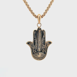 Golden Tone Hamsa Pendant Necklace for Men