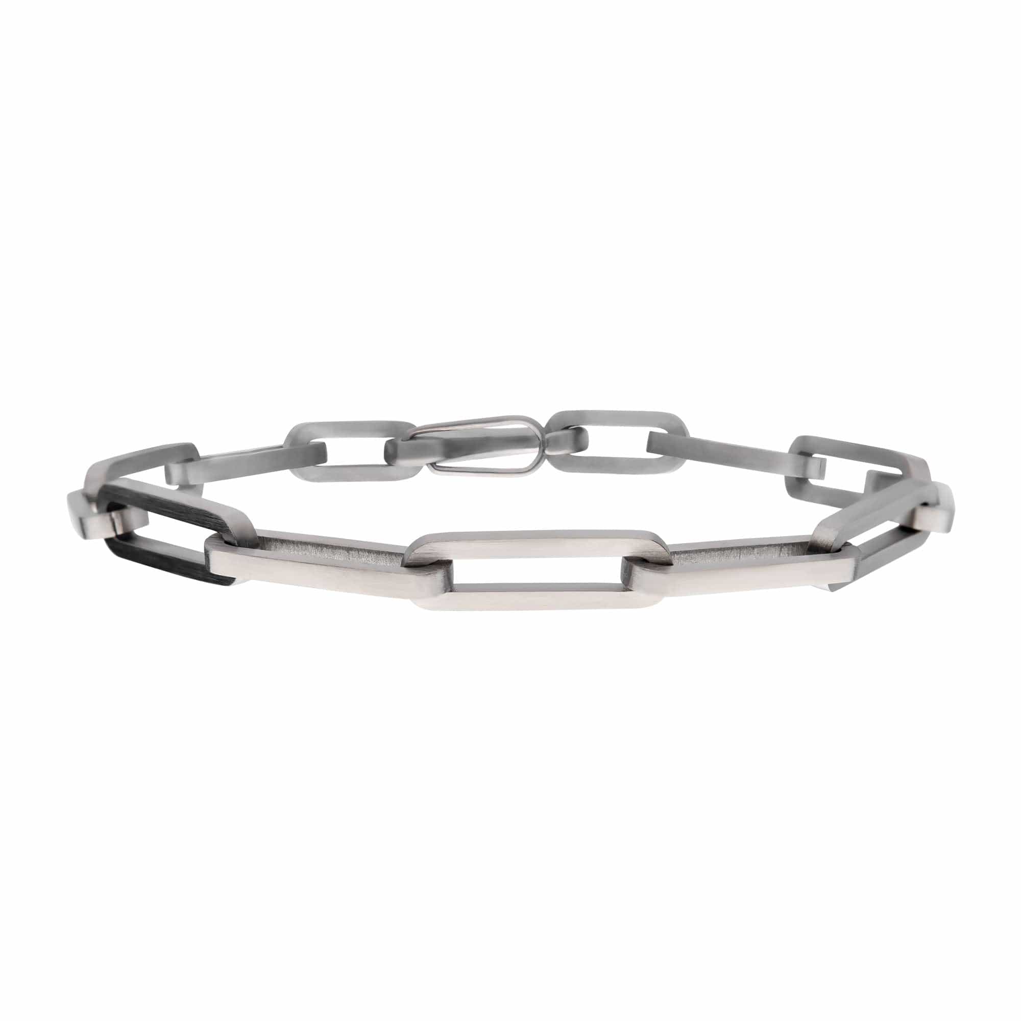 Show off your individual style with our Silver Stainless Steel 6mm Matte Finish Paperclip Link Chain Bracelet. This signature accessory is designed to make a statement - perfect for any man looking to make an impression. Whether you're dressing up for an occasion or dressing down for a casual day out, this stylish bracelet will exude effortless elegance.